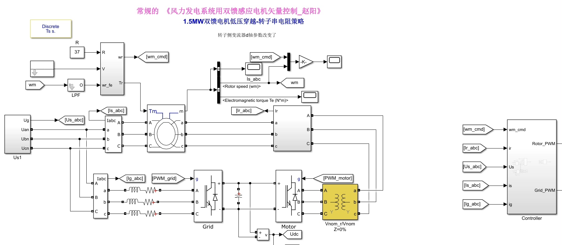 Matlab 永磁同步风力发电机 并网故障 低电压穿越策略 可以设计串电阻Bar策略 也可以增加三相故障