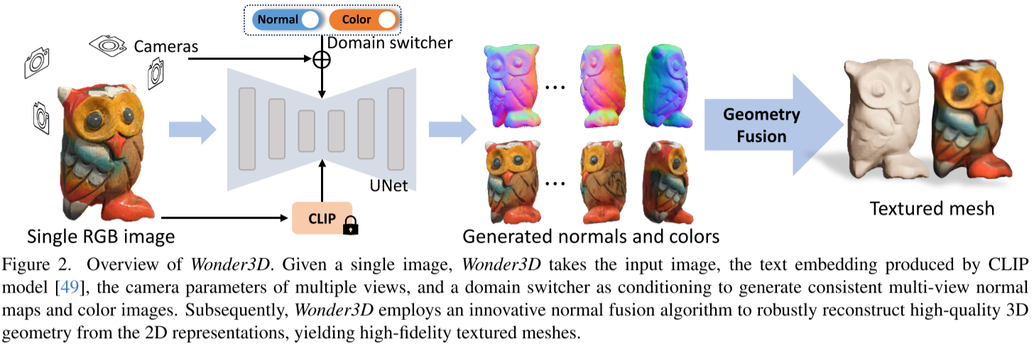 论文题目:Wonder3D: Single Image to 3D using Cross-Domain Diffusion(Wonder3D:单图像到3D使用跨域扩散)