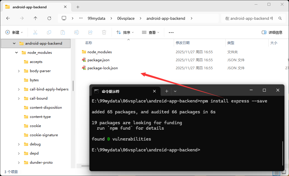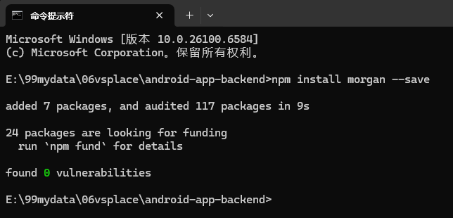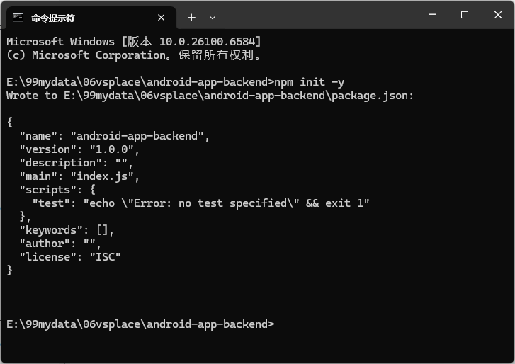 终端进入该目录(以Windows为例,假设文件夹在E:\99mydata\06vsplace\android-app-backend):