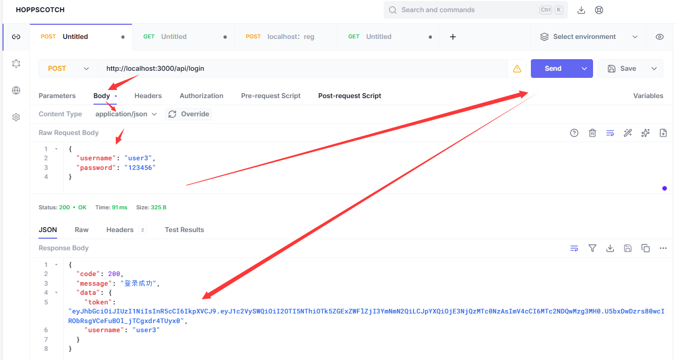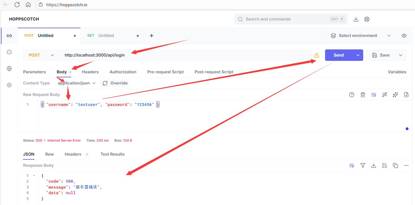 http://localhost:3000/api/login,参数:{ "username": "testuser", "password": "123456" }**🧩可选工具:**curl测试工具,也可以使用hoppscotch,参考文档: