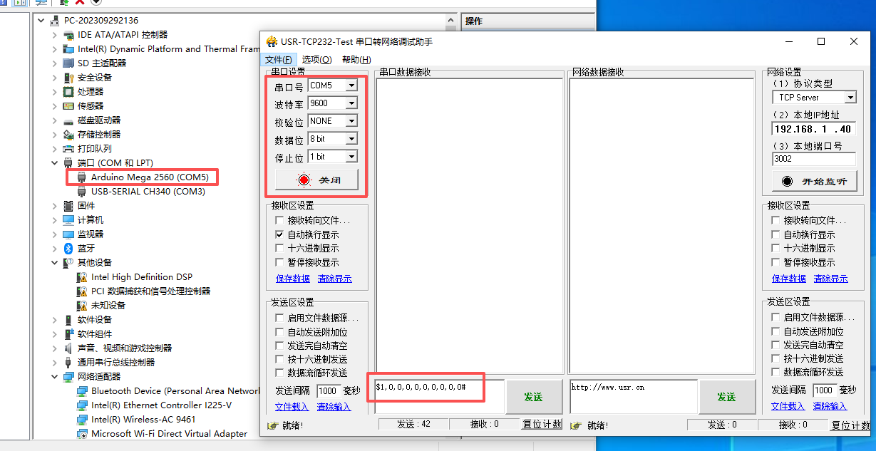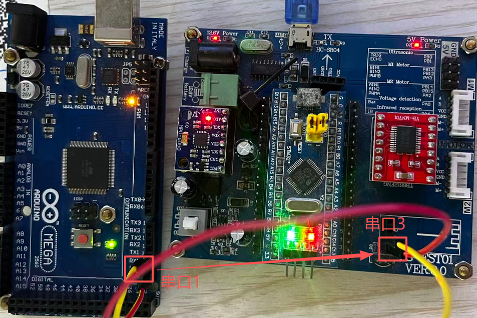 串口3中断:串口3和Arduino Mega单片机串口1连接,使用串口调试助手和Arduino Mega单片机连接,Arduino Mega单片机将串口调试助手发送的字符串通过串口1再转发送给STM32串口3
