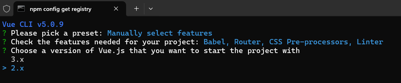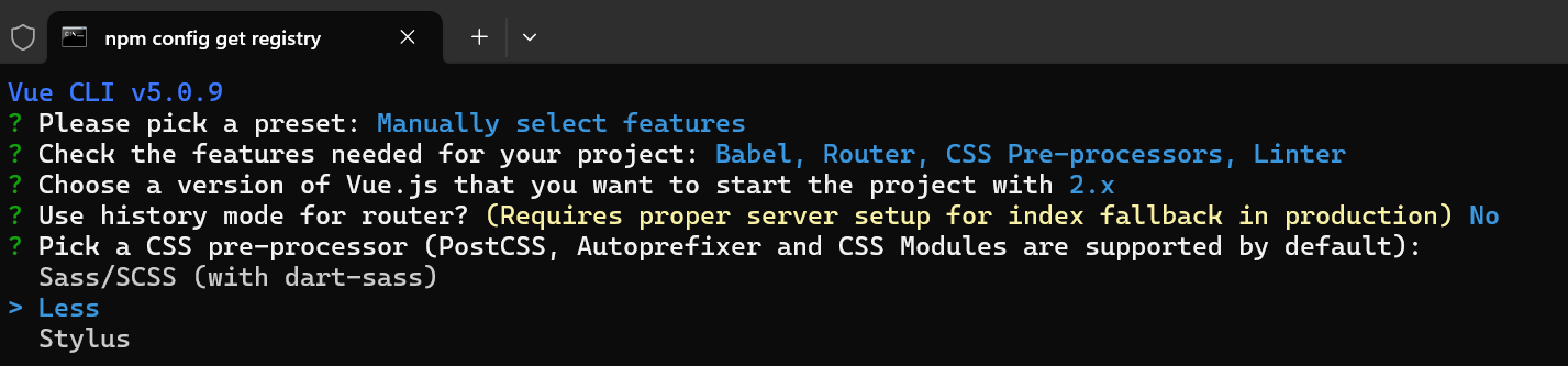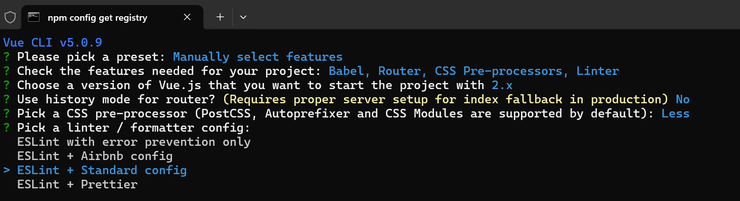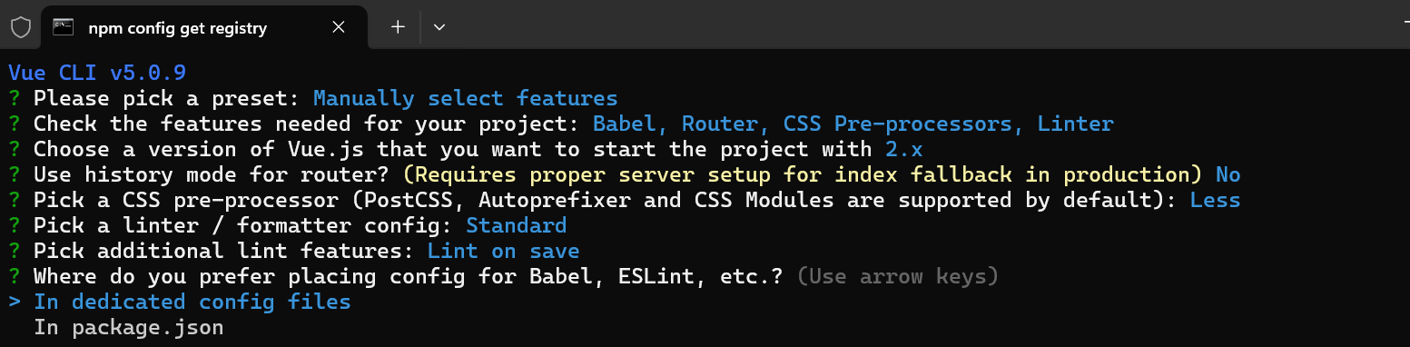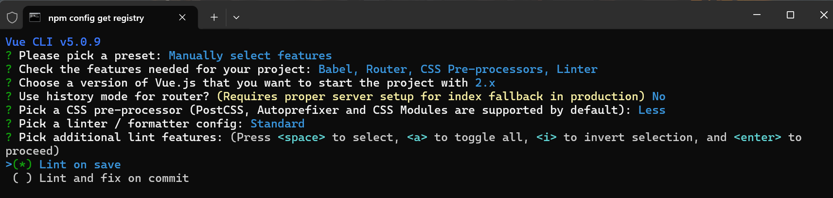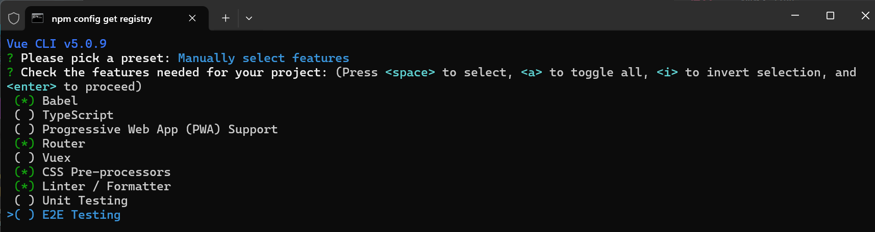 3.选择Babel,Router,CSS Pre-processors,Linter/Formatter