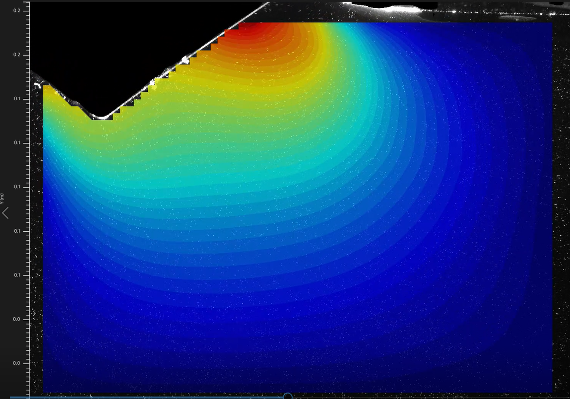 实验简介:模拟船体以一定速度和攻角入水时,可产生瞬态砰击压力,是船体结构设计的关键载荷。通过千眼狼高速2D2C-PIV系统记录入水初期流场(图1),利用上述泊松方程方法重构压力场(图2)。