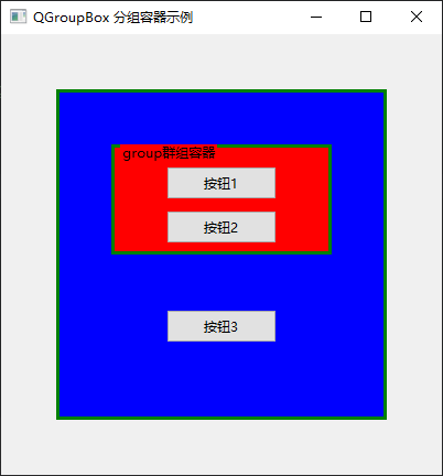 group.setGeometry(50, 50, 200, 100) # 设置组容器位置和大小