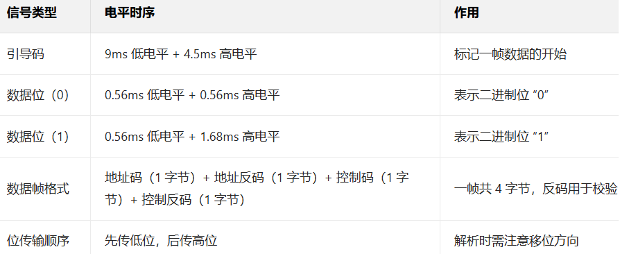 [4.2.1 NEC 红外协议基础](#4.2.1 NEC 红外协议基础)