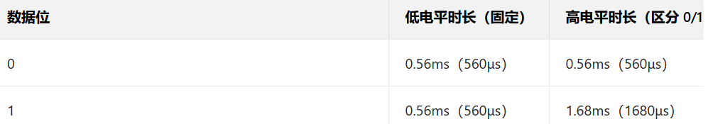 核心逻辑:低电平时长固定,通过高电平时长区分 0 和 1