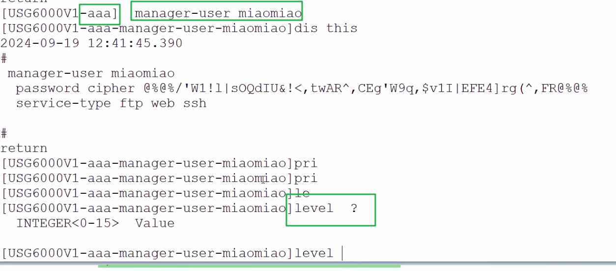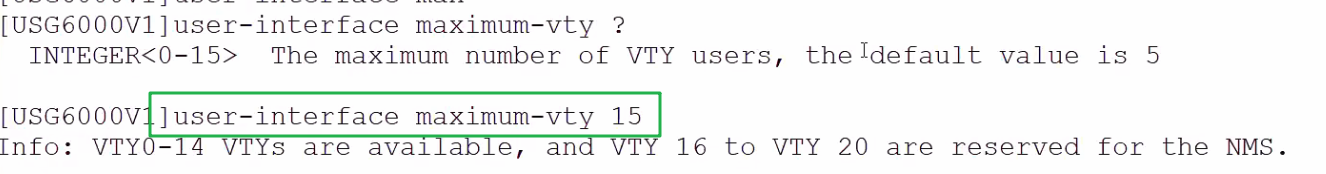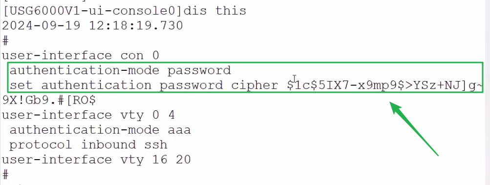 [USG6000V1-ui-console0]set authentication password cipher Huawei@123
