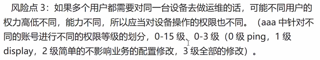level 15的本地账户,并妥善保管密码,用于AAA服务器故障时应急。 -