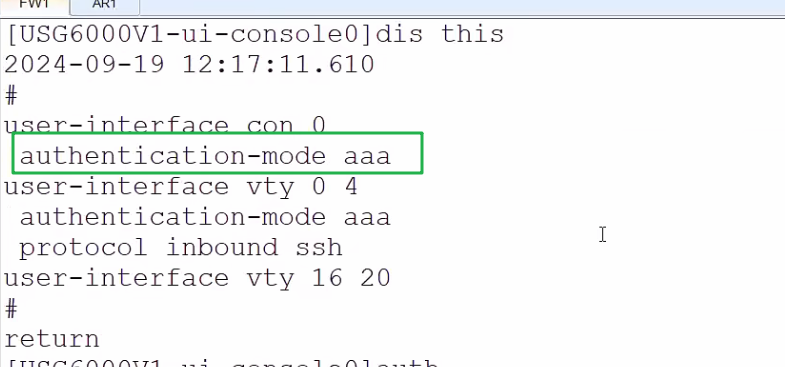 如果现在是用console线的方式接到防火墙上,现在如果想对console口的认证方式做一个变化。