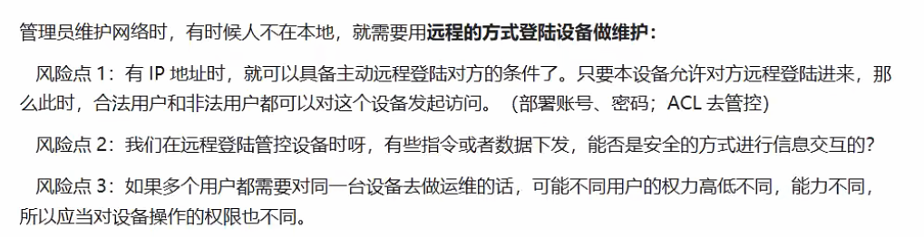 ssh,stelnet这种虚拟的方式登录到设备上,想去做一些配置修改时,肯定也有地方做管控。