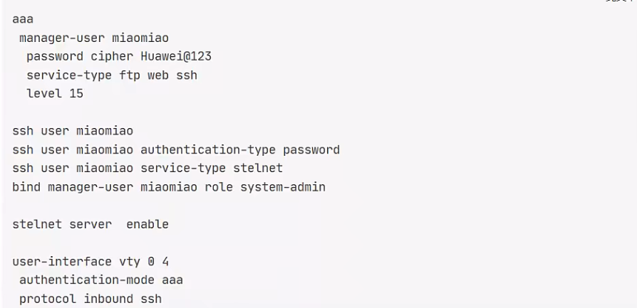 → ssh user admin service-type sftp(只能传文件,不能登终端)