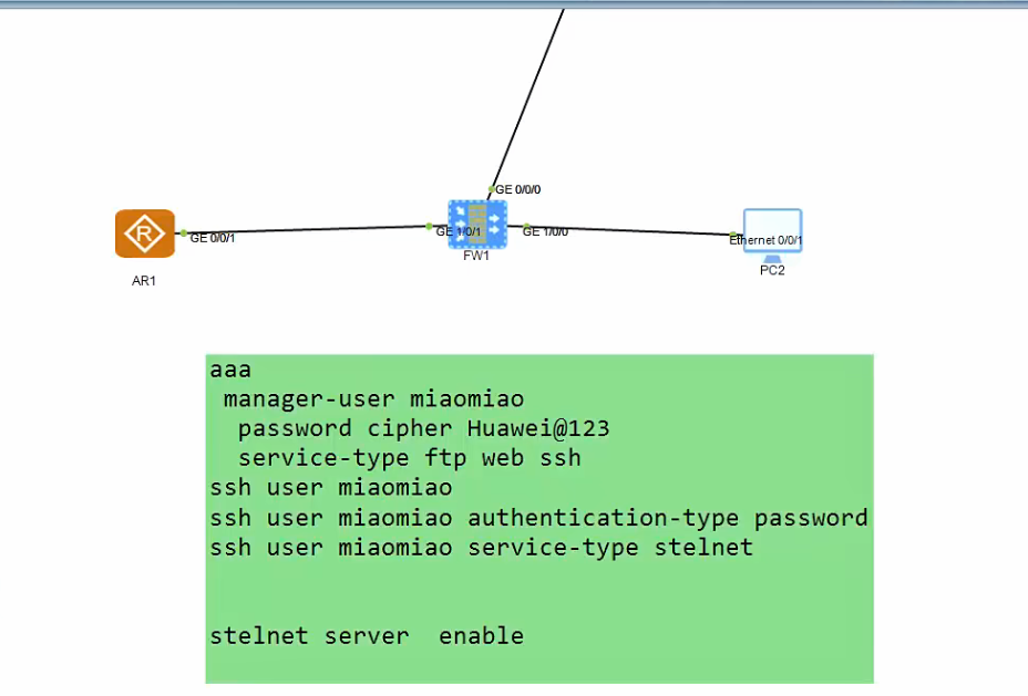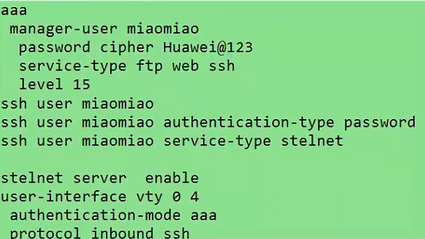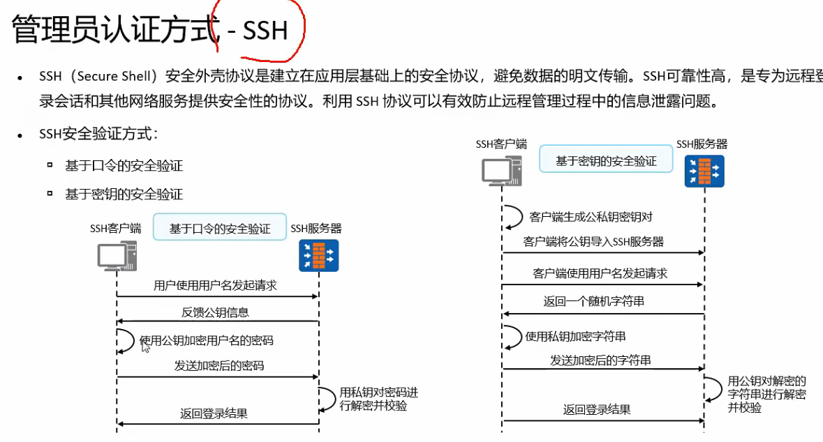 SSH: admin/Huawei@123 → 建立**加密隧道**,所有数据加密