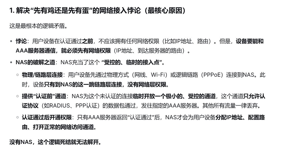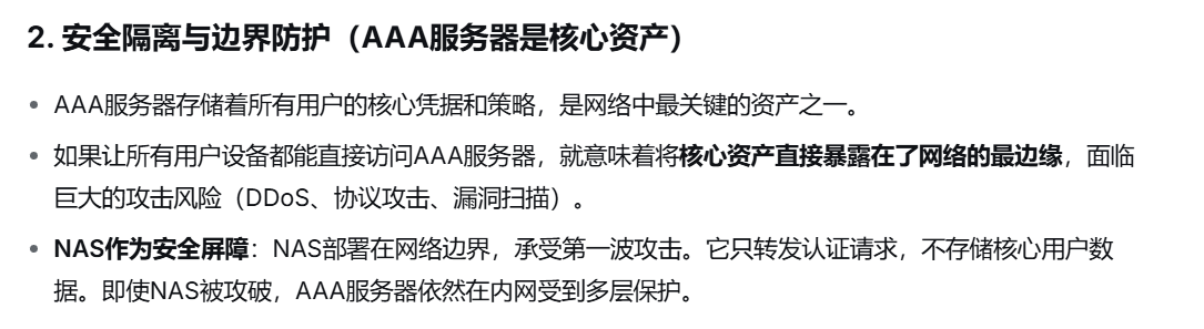 问题:为什么中间要有NAS,而不是直接连接AAA服务器