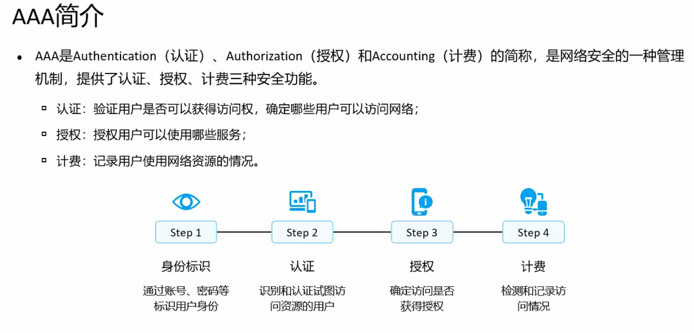 | FTP | FTP协议 | 21 | 继承AAA配置 | 功能单一,只需开关控制 |
