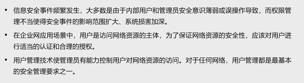 用户只要接入网络,就需要通过认证,而不是收插上网线,连上wifi就能直接使用(不安全、无法追溯源头)。