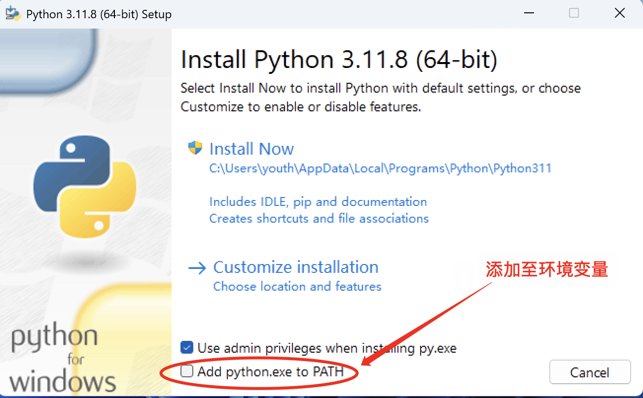 现在的 Python 安装程序一般都可以自动配置环境变量,默认勾选"添加到环境变量"即可。省时省力,对新手非常友好