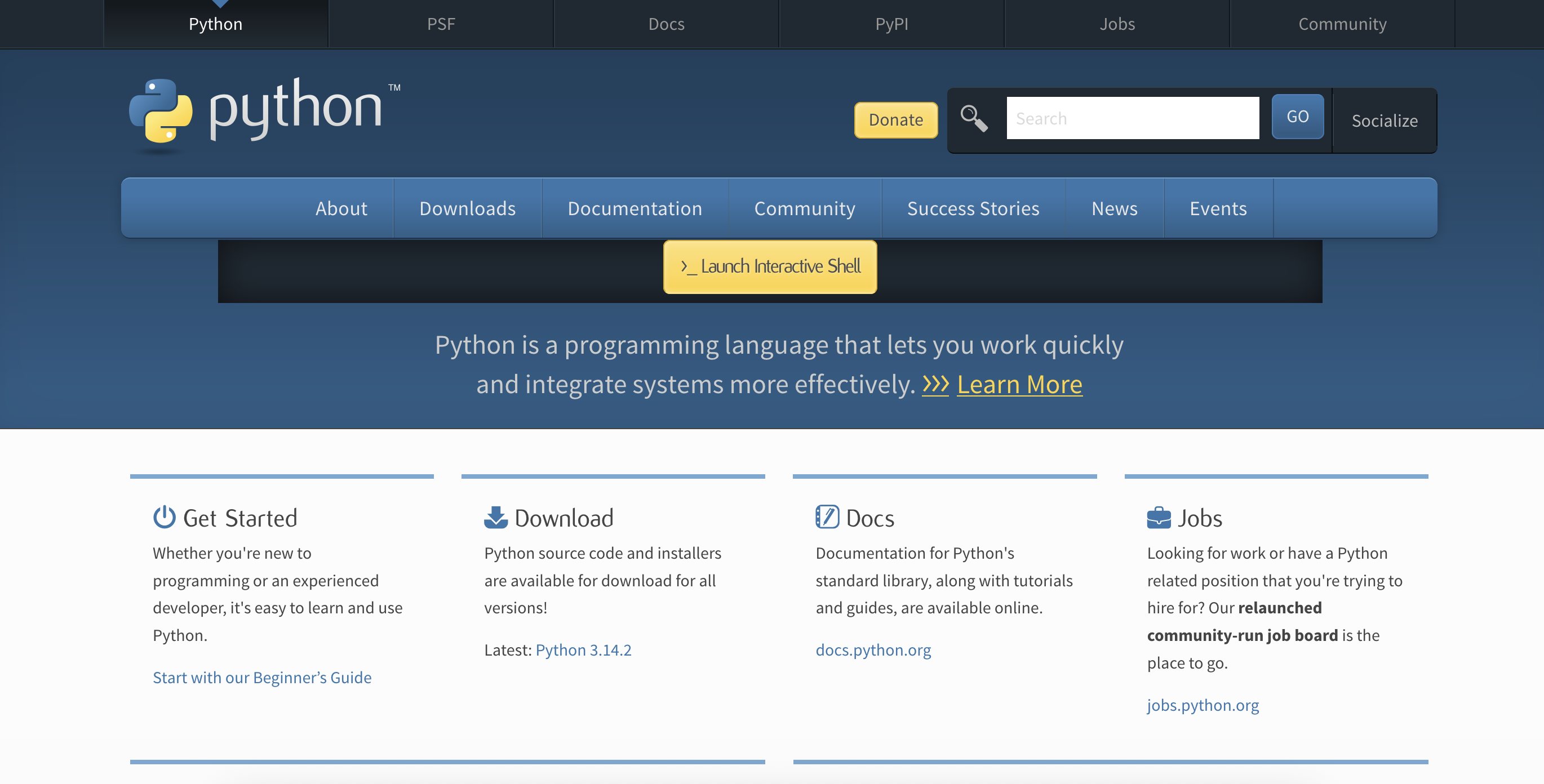 这是它的官网:**https://www.python.org/**(毕竟是国外开发的,网站当然是英文的)
