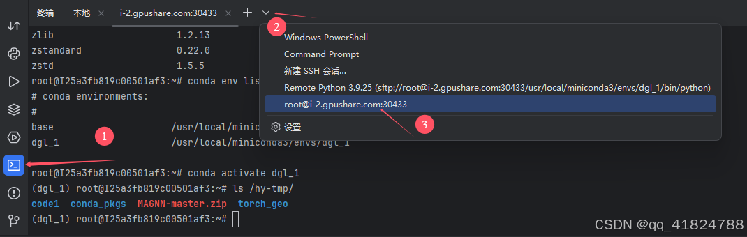 在 终端 选择刚才的服务器,这样就可以连接到服务器上的"实例"