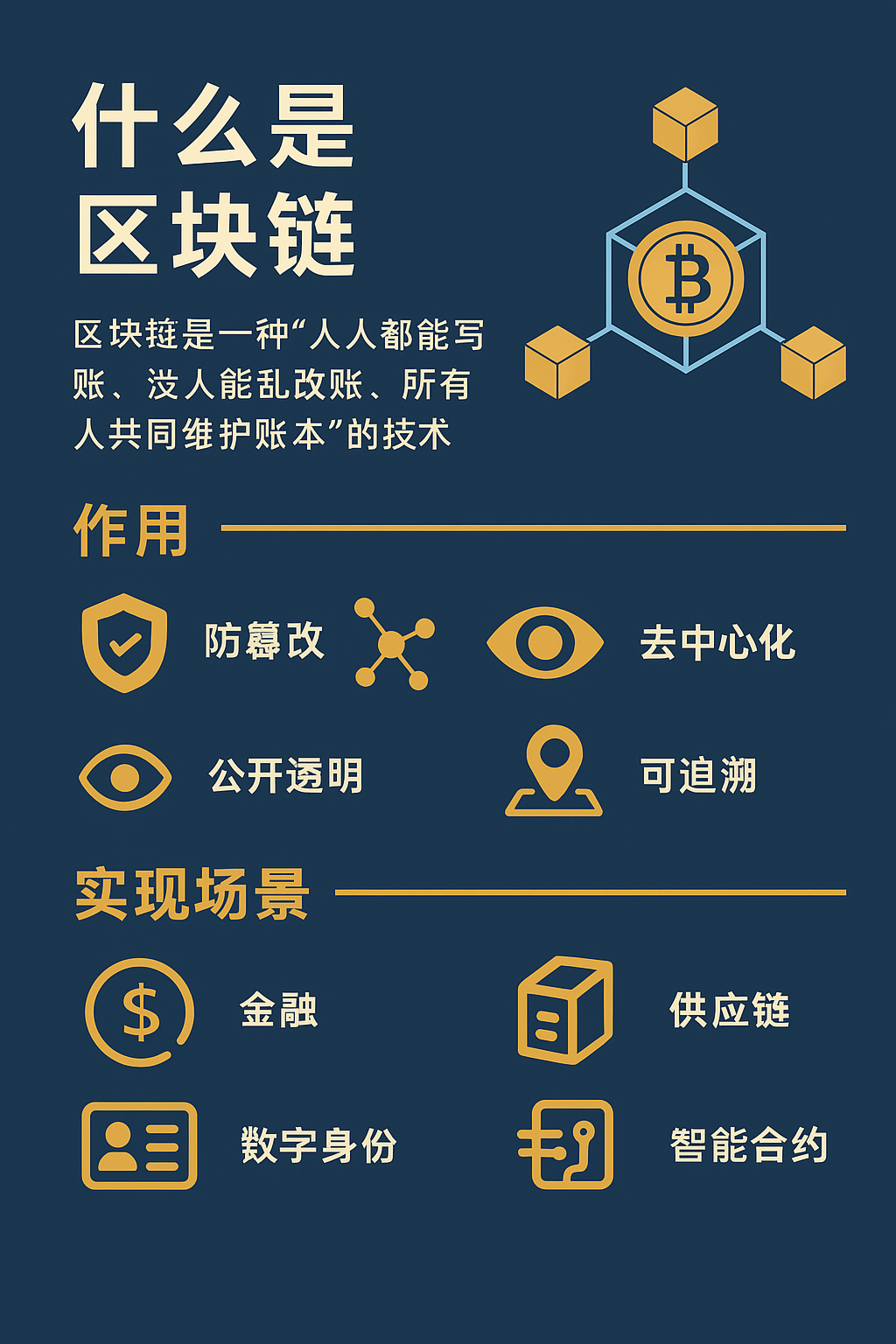 一个全球多人共享的"公共账本",任何人都能查看,但没人能随便篡改。