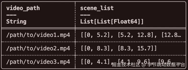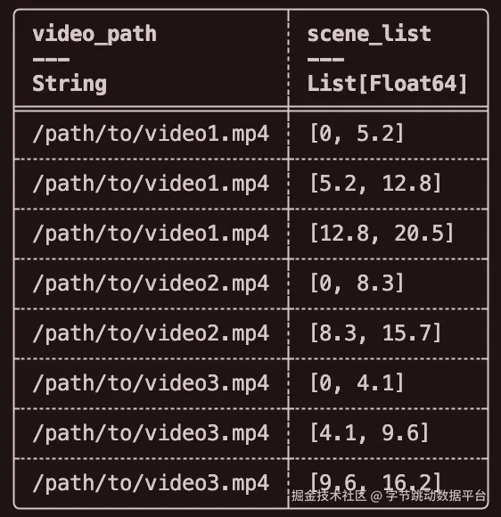 df = df.with_column("clip_path", video_split_udf(col("video_path"), col("scene_list"))) # 步骤2:视频切分