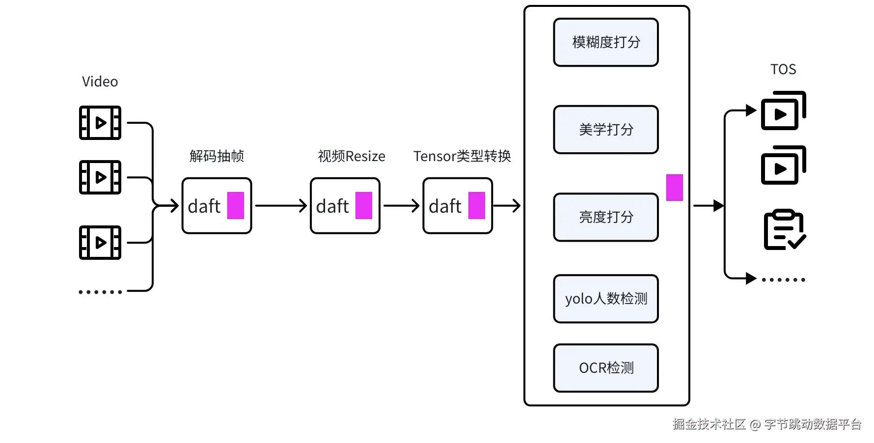 随后,借助 Daft 的分布式任务调度和并发执行能力,实现大规模的并行视频切分操作