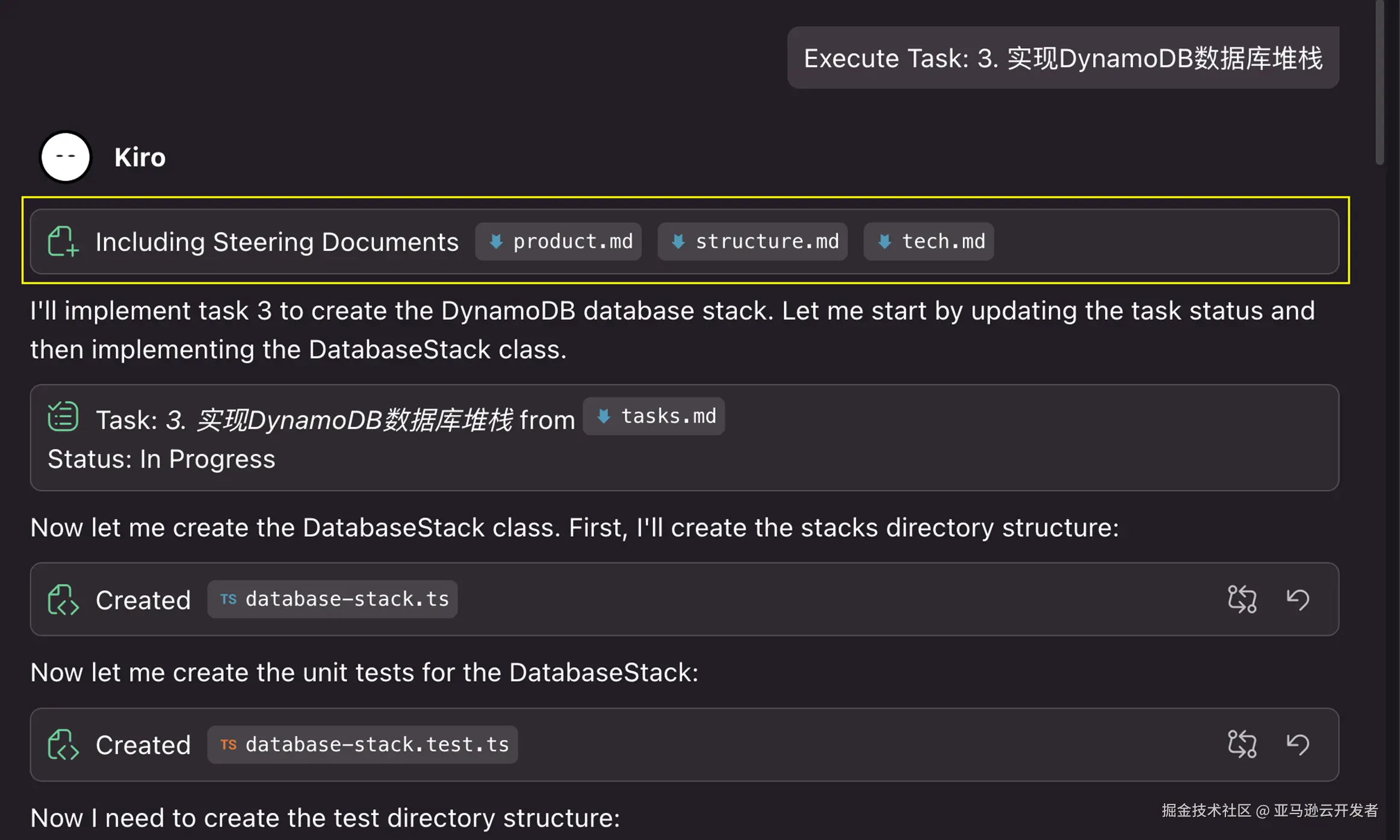 在进入任务执行前,我让Kiro 结合Specs三个文档(requirements.md, design.md, tasks.md),更新了Steering。