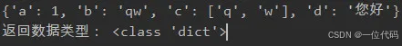 a_dict = {'a': 1, "b": 'qw', '''c''': ['q', 'w'], 'd': '您好'}