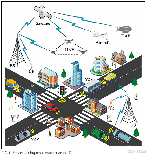 应用场景介绍: 下一代(NG)无线网络被设想为满足在多种动态和高速移动场景中对超可靠、广覆盖通信的迫切需求,如车对车(V2V)、无人机(UAV)、卫星网络等,如图1所示。