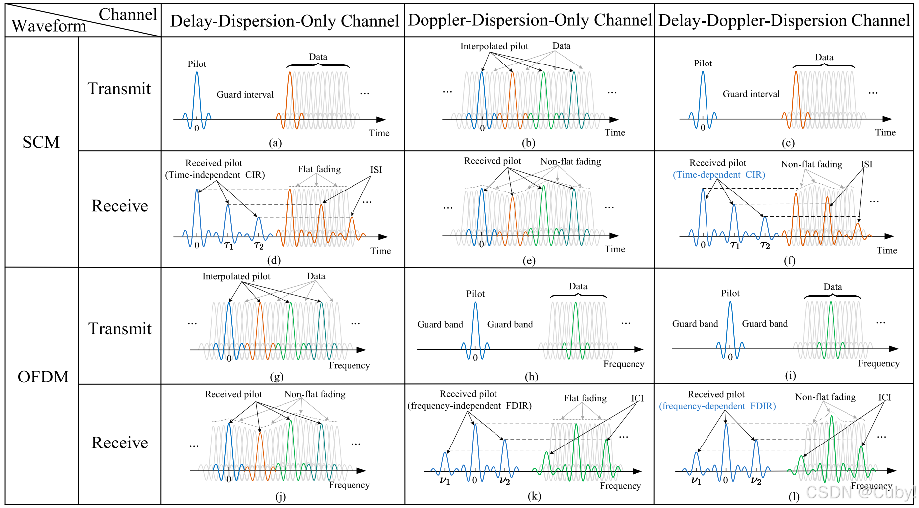 然而,在DDC的情况下,FDIR是频率依赖的,这意味着通过导频估计的FDIR无法与不同频率信号的FDIR一致。因此,在OFDM中有效的均衡仍然无法实现。总结来说,SCM和OFDM都无法有效管理DDC中不可避免的干扰,因为它们在干扰估计方面存在局限性。