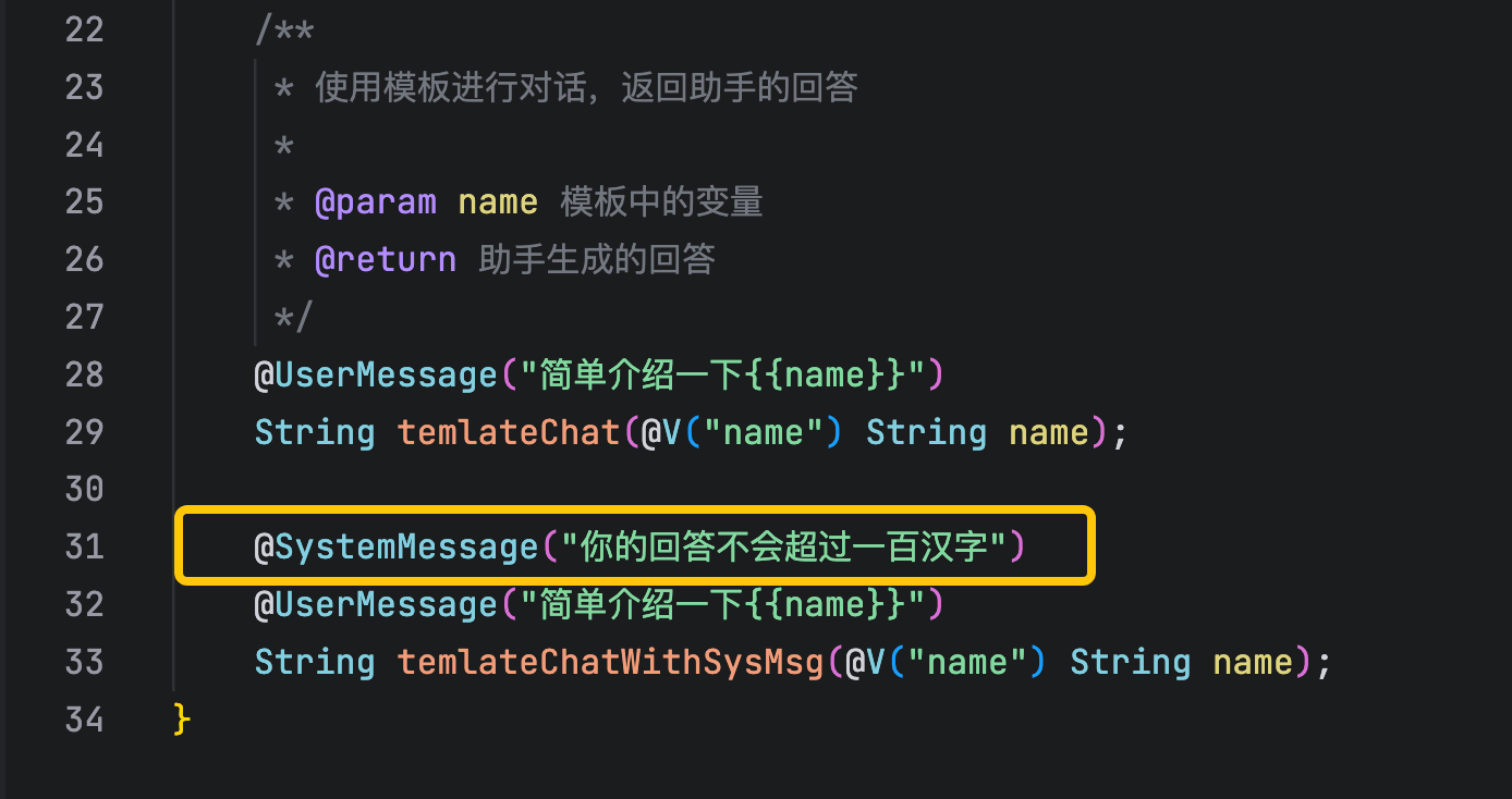 - 再来体验设置系统消息的AiService,用注解SystemMessage来实现