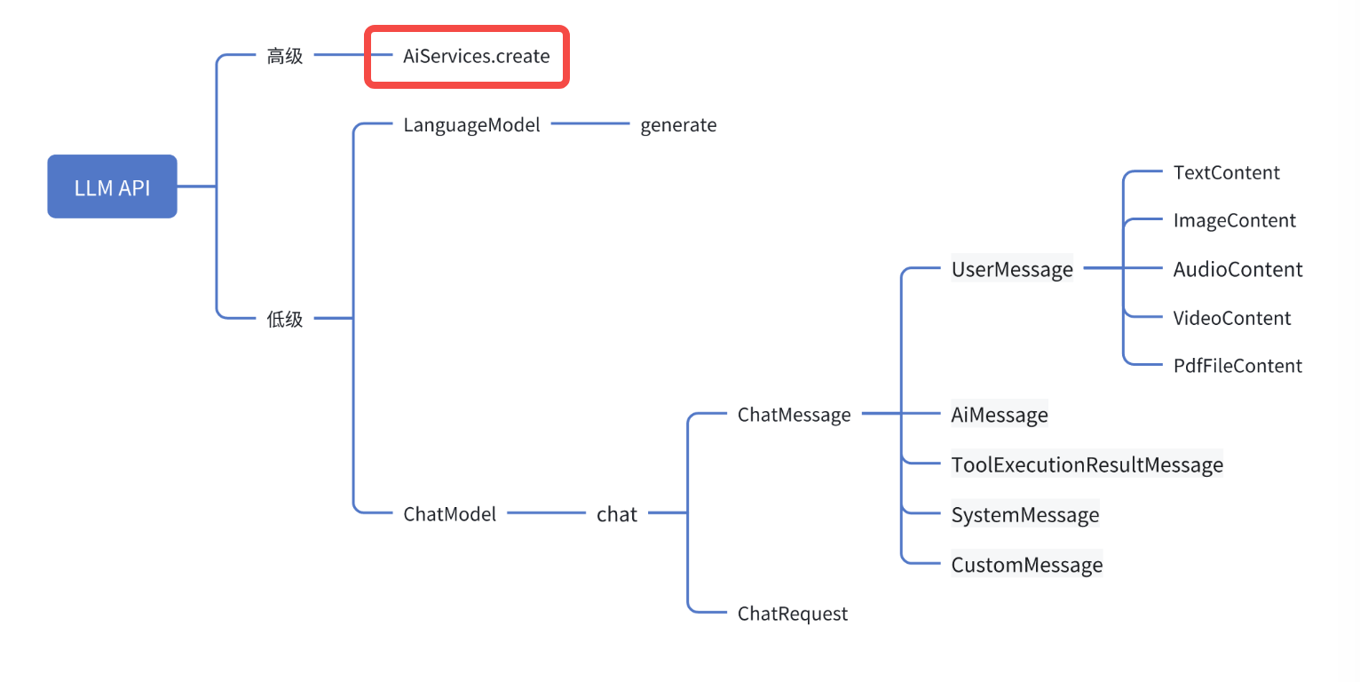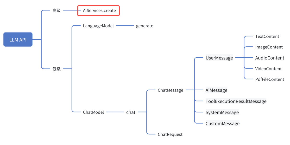 - 可见使用了AiService后,不用显式调用大模型服务,只需要设计一个接口也能实现同样效果