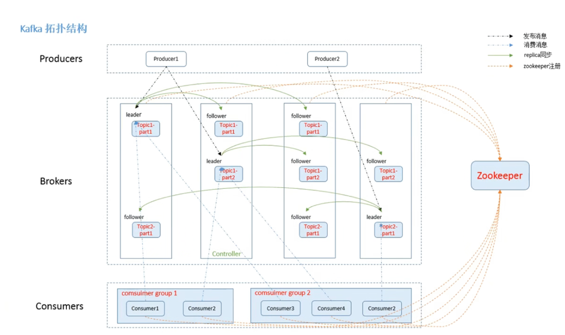 Replica:副本。一个topic的每个分区都有若干个副本,一个Leader和若干个Follower。