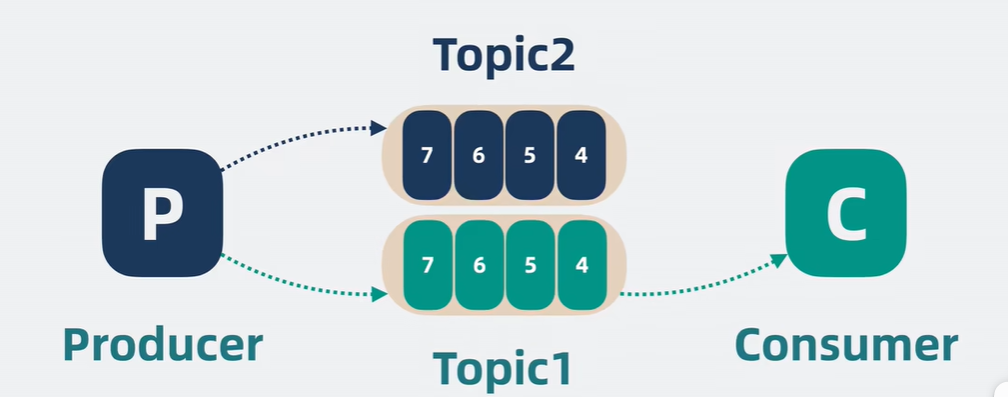 可以理解为一个队列,生产者和消费者面向的都是一个topic。类似于数据库的表名或者ES的index。物理上不同topic的消息分开存储。