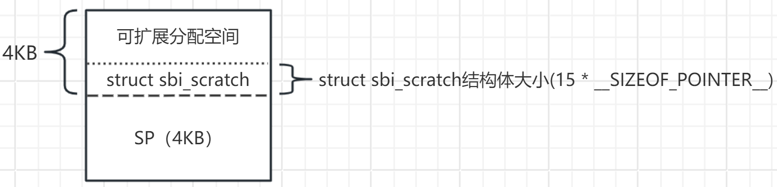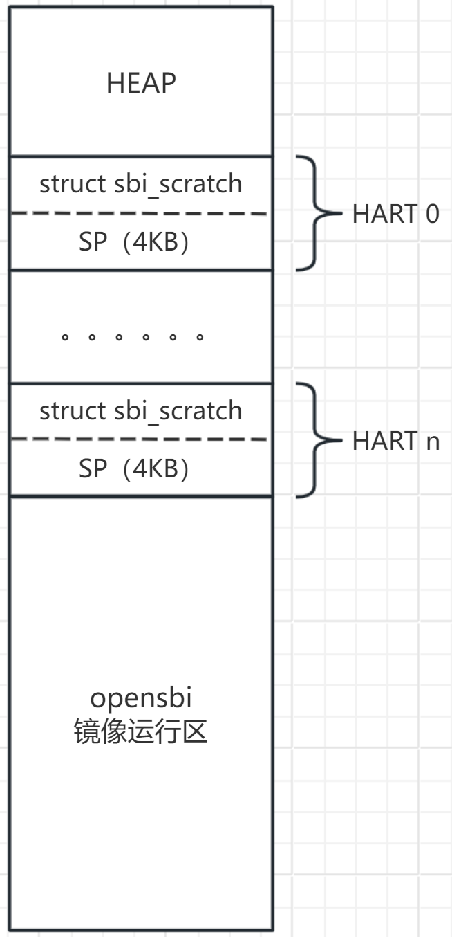后续一些scratch内存分配操作函数(如sbi_scratch_alloc_offset等) 都是基于hartindex_to_scratch_table数组来实现的,其实现原理下面将通过代码与空间分布图说明。
