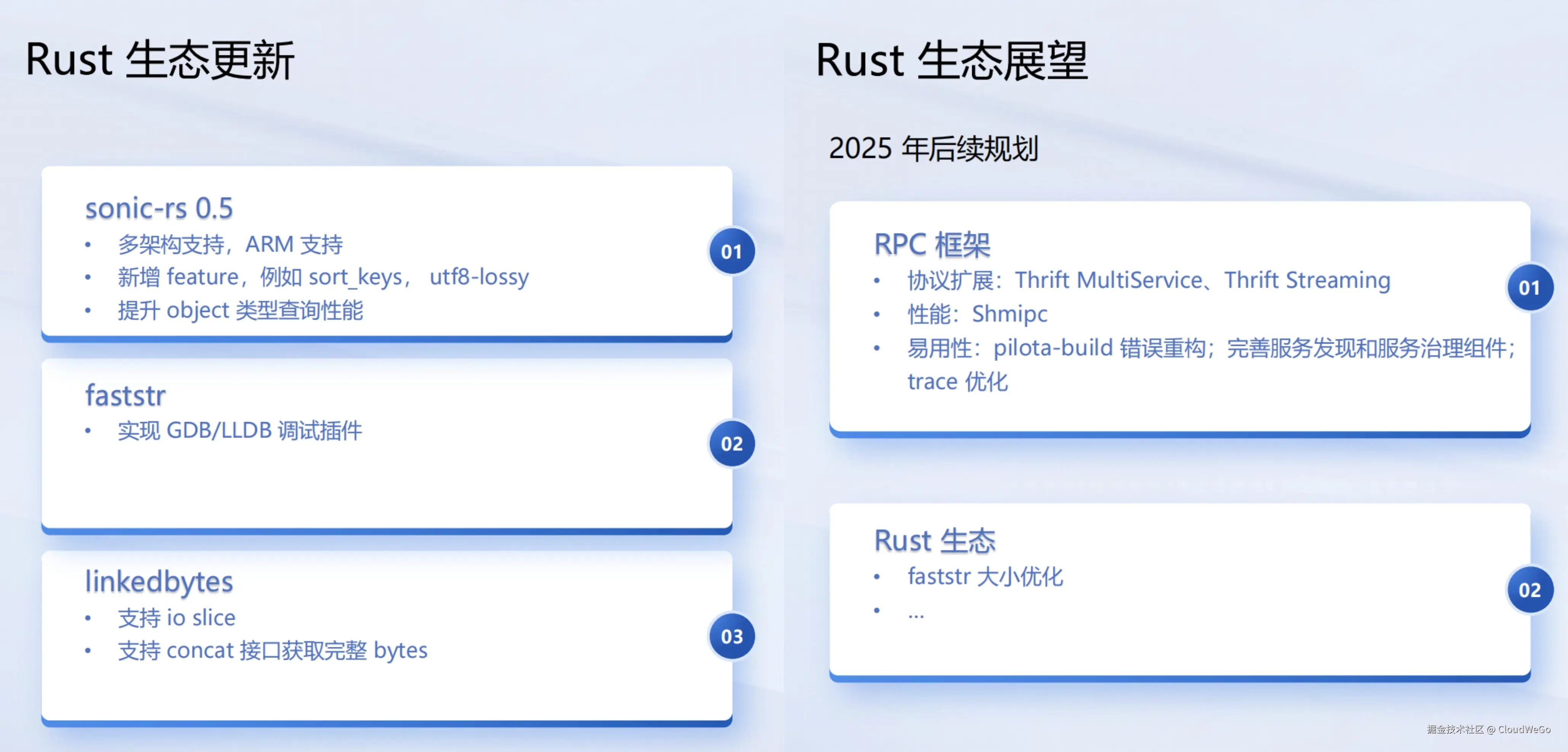 作为 CloudWeGo 生态中 Rust 方向的核心维护者,团队将持续聚焦于性能与易用性,致力于输出更多高质量的 Rust 微服务组件。