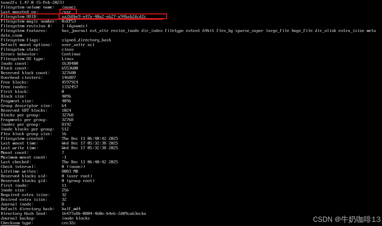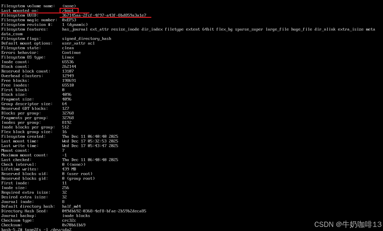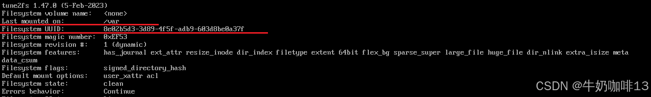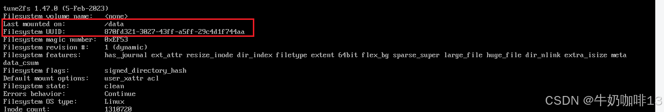 《3》执行【tune2fs -l /dev/sdbx】命令可以分别确定其他的挂载分区。