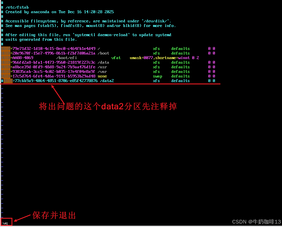 #2-进入Linux系统中将持久化自动挂载文件【/etc/fstab】删除