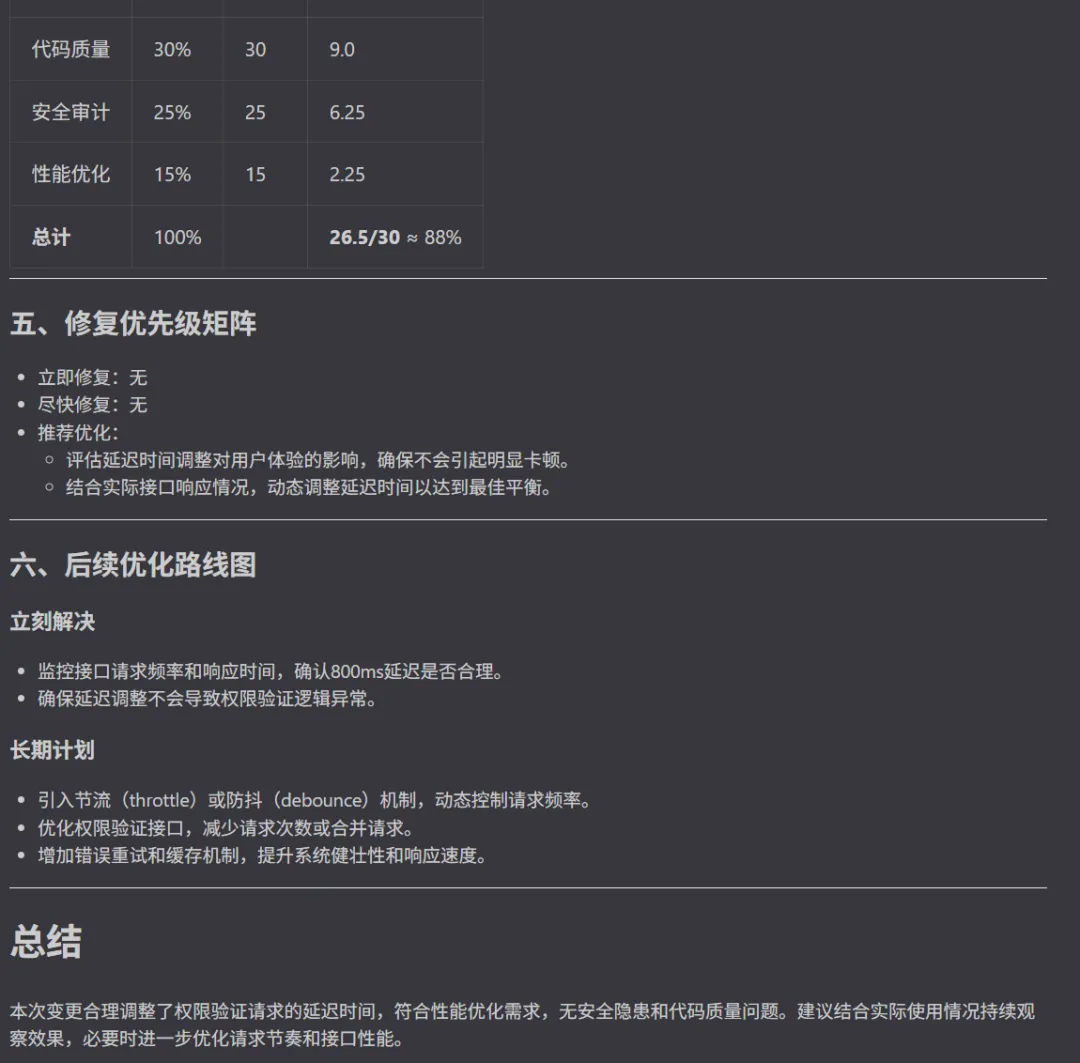 针对暂存的更改,一键生成详细的代码审查报告,快速发现潜在缺陷、性能问题与安全风险,助力高效提升代码质量