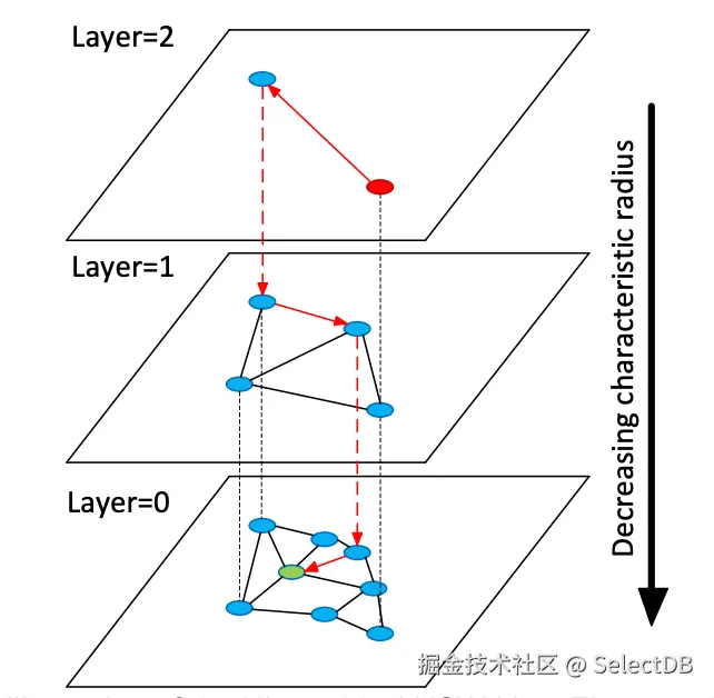 - HNSW(Hierarchical Navigable Small World)基于分层图结构,能够在搜索时快速从稀疏层缩小范围,并在底层进行精细查找。其优势包括:高召回率,在语义检索中接近精确搜索效果;低延迟,查询复杂度接近 O(log n),适合大规模场景;可调节精度,通过