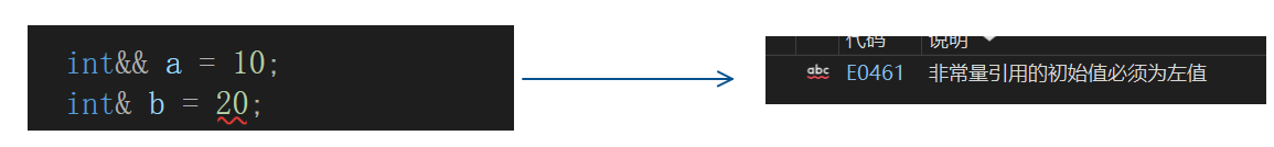 1,左值引用不能直接引用右值引用,但是const 左值引用可以引用右值引用。如下: