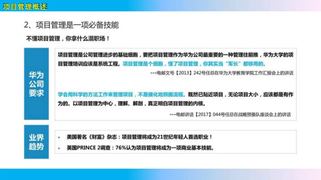 适配通信技术研发、全球设备交付、市场拓展、内部管理变革等各类项目,支撑 "以项目为中心" 的运作模式。