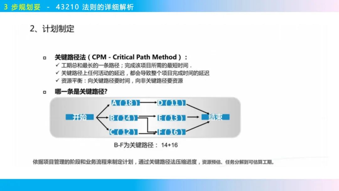 制定科学的进度计划,常用关键路径法锁定工期最长的核心路径,这一路径的耗时就是项目最短完成时间,且该路径上的任务延迟会直接拖慢整个项目。同时计划制定会分层推进,既设定阶段性的里程碑目标,也做带冗余量的详细计划,还会通过资源平衡,从非关键路径调配资源保障关键路径进度。