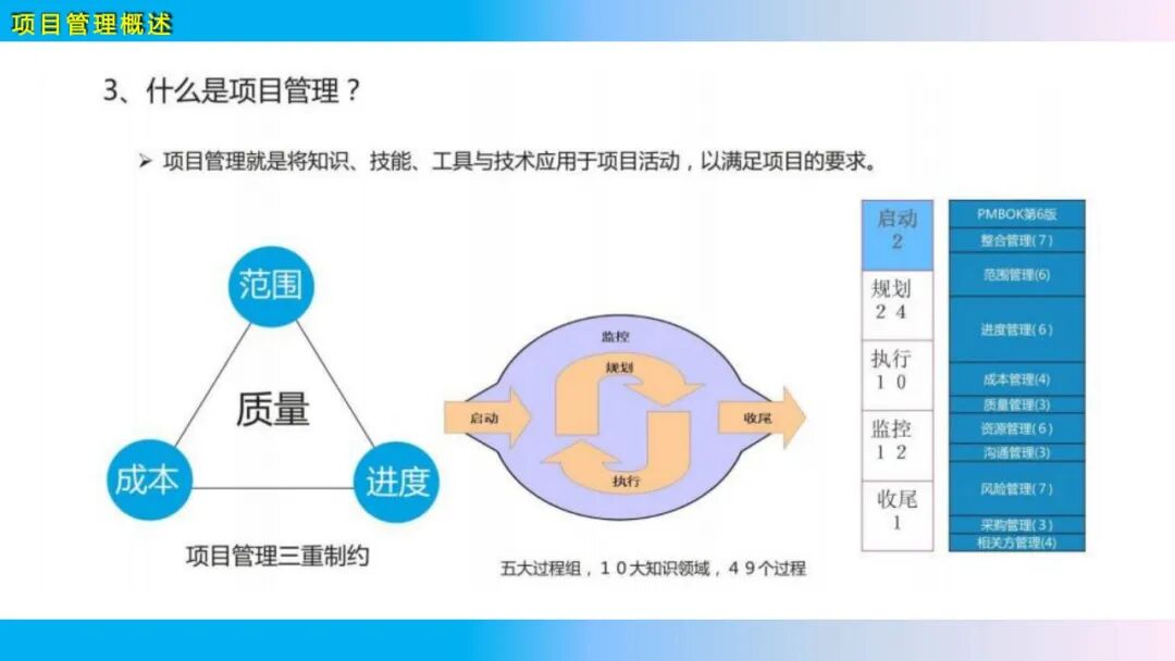 适用于碎片化的 "小型项目",比如工作中的研讨会组织、新员工培训筹备,生活中的旅行规划、装修筹备等,用 "定目标 - 做规划 - 抓执行 - 控风险 - 闭环交付" 的逻辑高效推进。