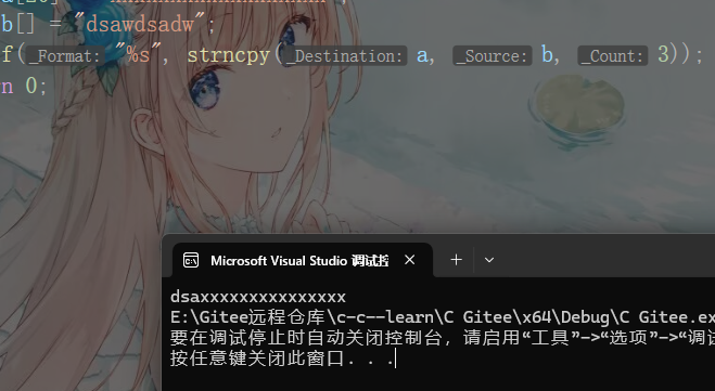 我们也可以来验证下这个拷贝会不会把\0拷贝过去,我们把目标空间先初始化成全x,看拷贝完输出还会不会有x,代码如下