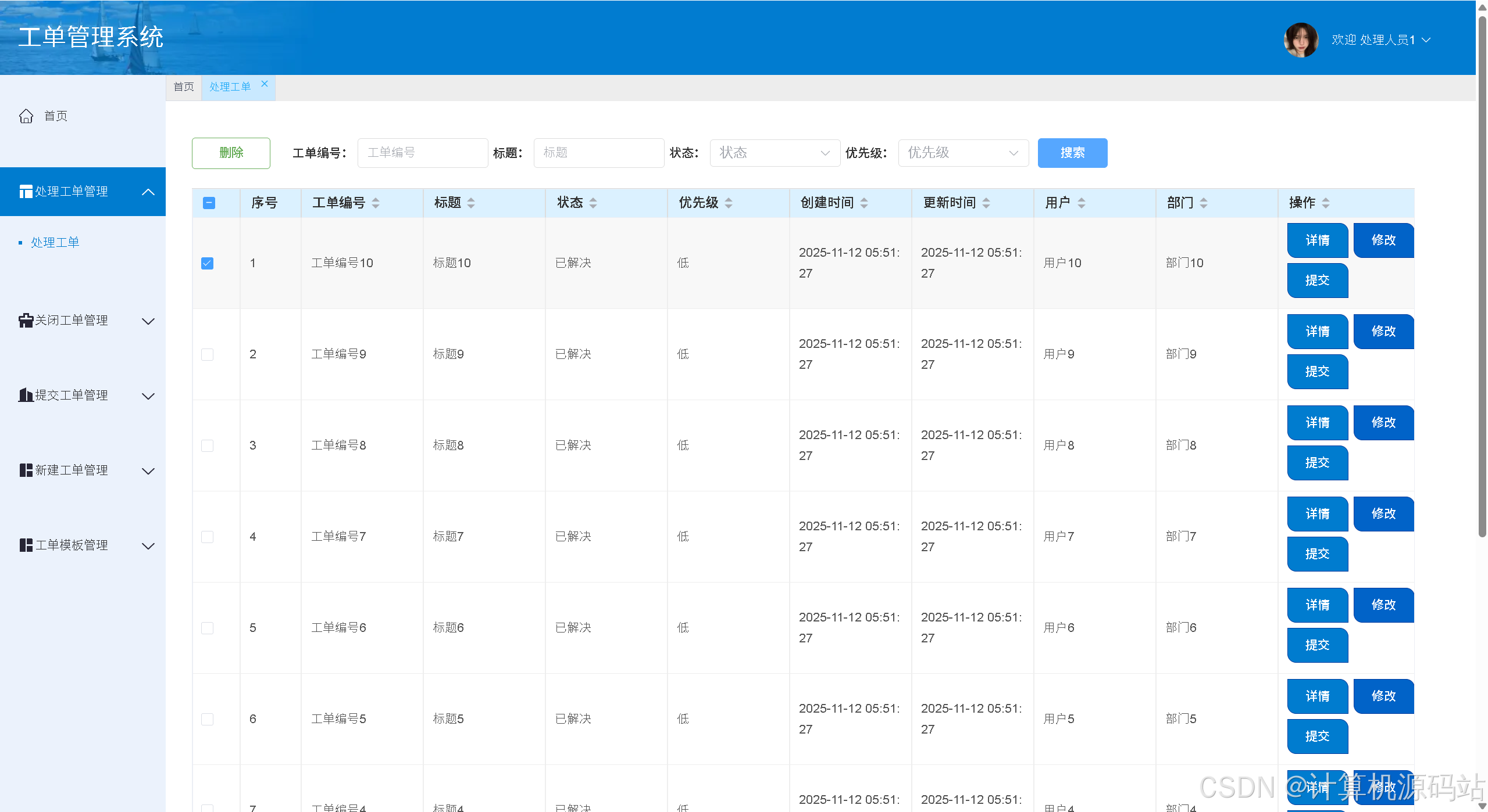 基于Java+Springboot+vue3工单管理系统的设计与实现(源代码+数据库+开题报告)