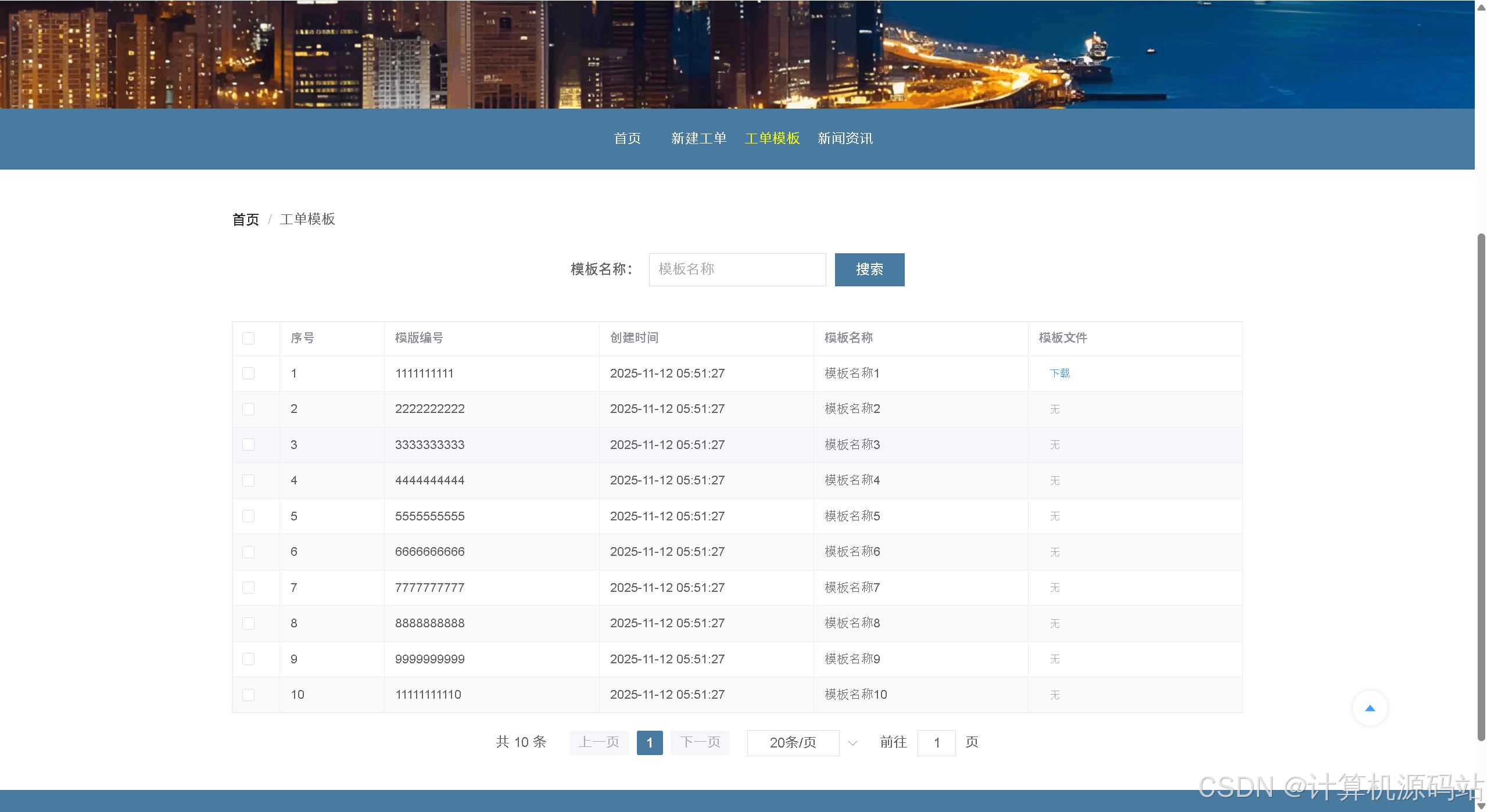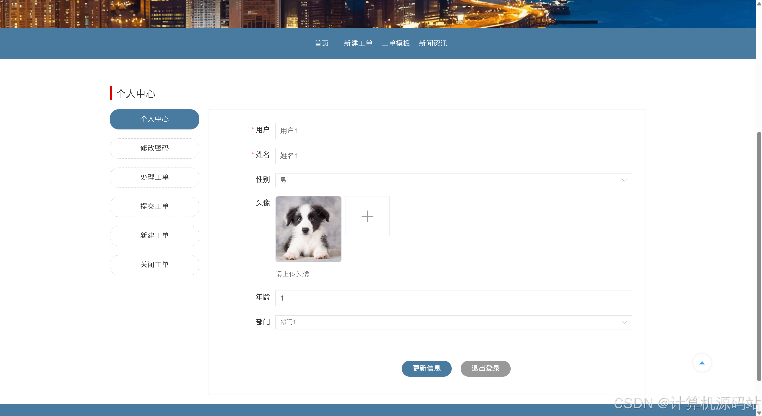 - 注册、登录、创建工单、处理工单、关闭工单、工单模板下载、通知公告、个人信息、密码修改