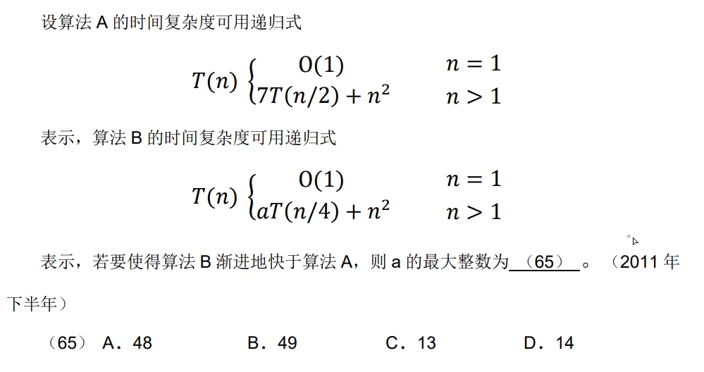 每次递归时时间复杂度改变时