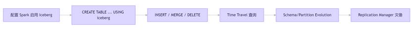 | 小文件合并 | 定期执行:CALL spark_catalog.system.rewrite_data_files('iceberg_demo.sales') |