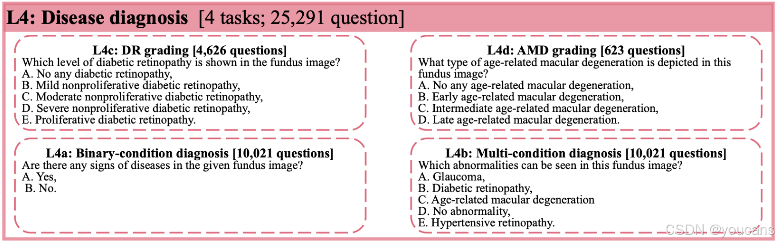 - 层级4 (L4):疾病诊断(根据病变和解剖结构做出综合判断)。