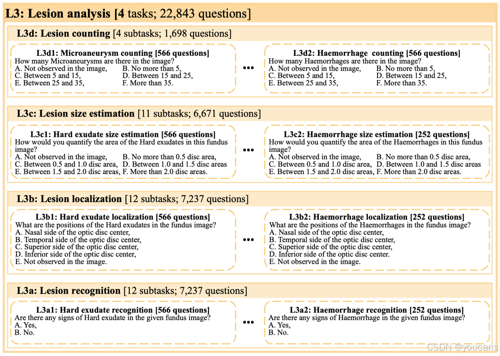 - 层级3 (L3):病变分析(识别和定位病变)。